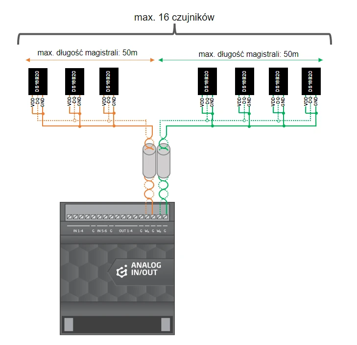 Hello, how do you connect the DS18B20 sensors in series on the 1-Wire bus - do you solder a twisted pair to the sensor legs and go to the next one via some quick connectors? This is supposed to be the bus in the Grenton: 6 sensors connected to Analog In/Out.
