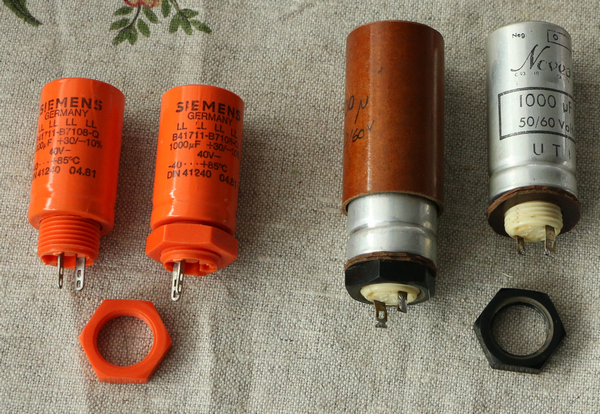 The electrolytic capacitors were unfortunately dried out and needed replacing. Some were moved from the chassis to the board and replaced with working good quality ones. Two large capacitors were replaced with vintage Siemens and bolted to the chassis (they still have excellent performance and they look nice)