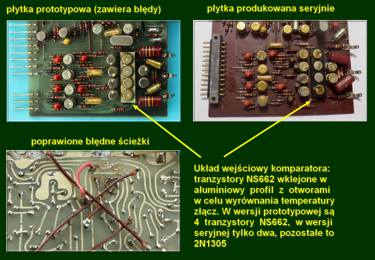 Comparator: Already at first glance it needed repair, or rather tidying up of some components. Due to the fact that this is a prototype version some paths were cut and components were placed in newly drilled holes and connected by wires. It looked like a nightmare, but I managed to embrace it. There was another problem - some of the contact pins were falling out of the boards. All contacts to be removed and reassembled: (the serial version of this voltmeter has good gold-plated pins and sockets)