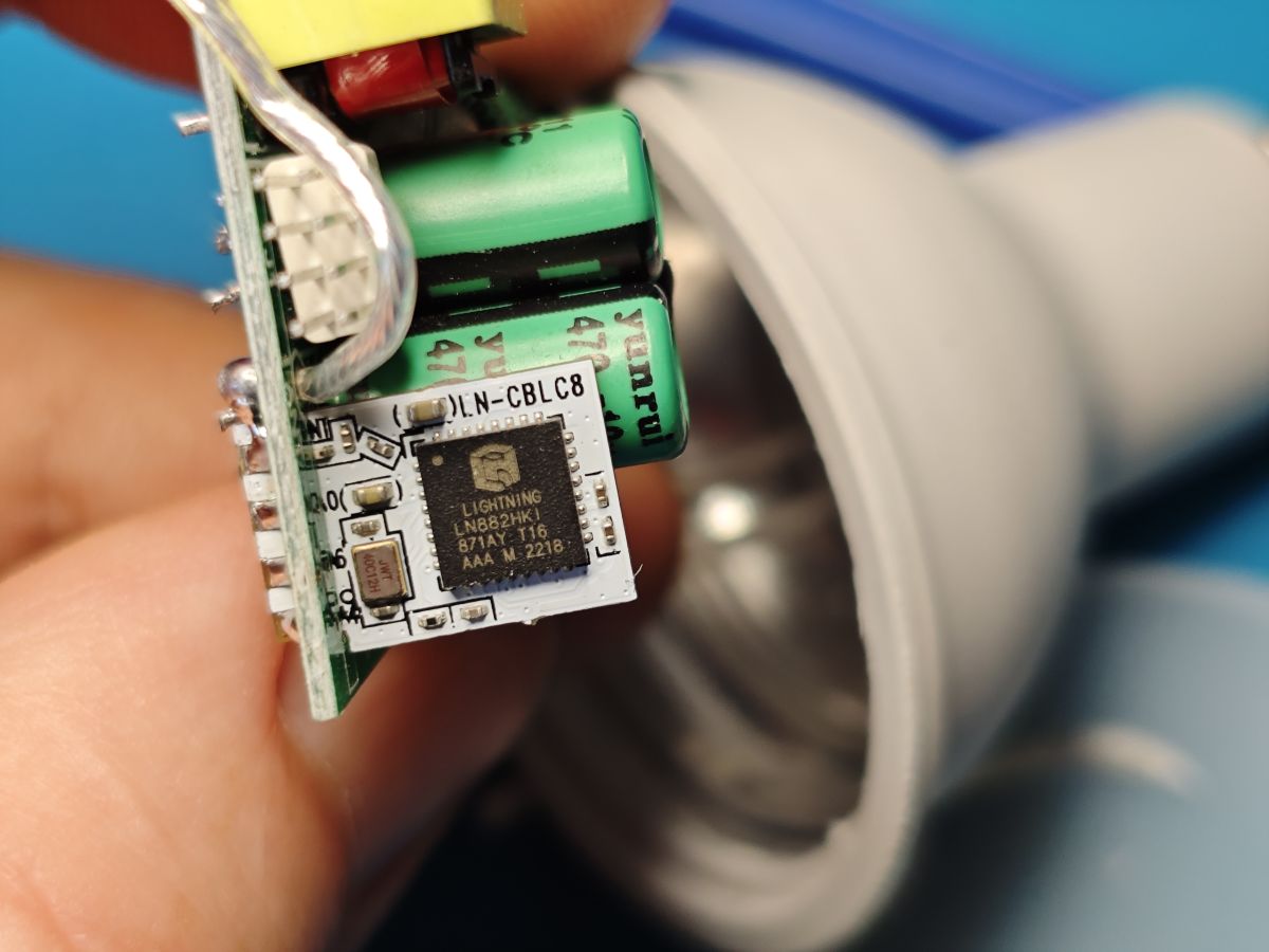 This device uses a new (?) 8-pin LN882 board, LN-CBLC8, with an external antenna wire.