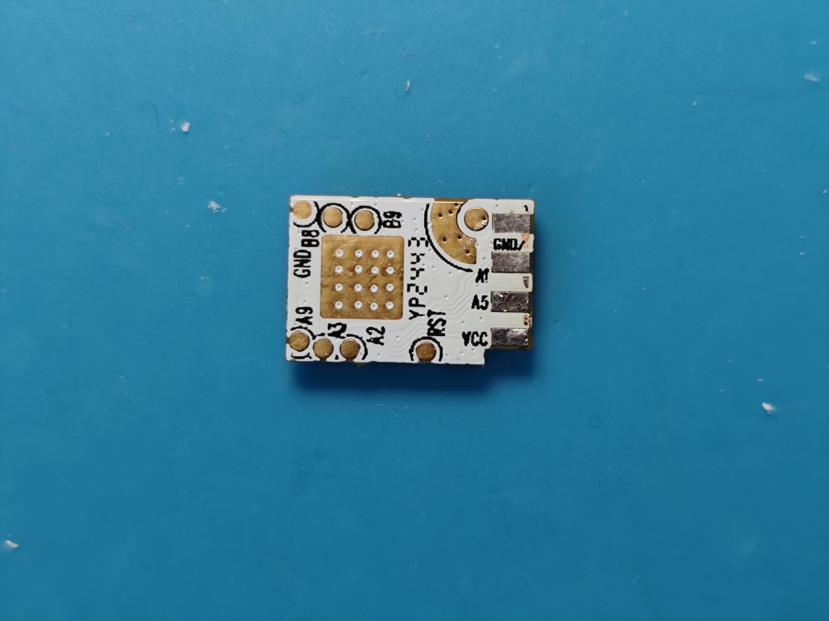 Flashed using A9 to GND and RX/TX on A3/A2 (easily flashed from an RPI using /dev/ttyAMA0 and loader.py).