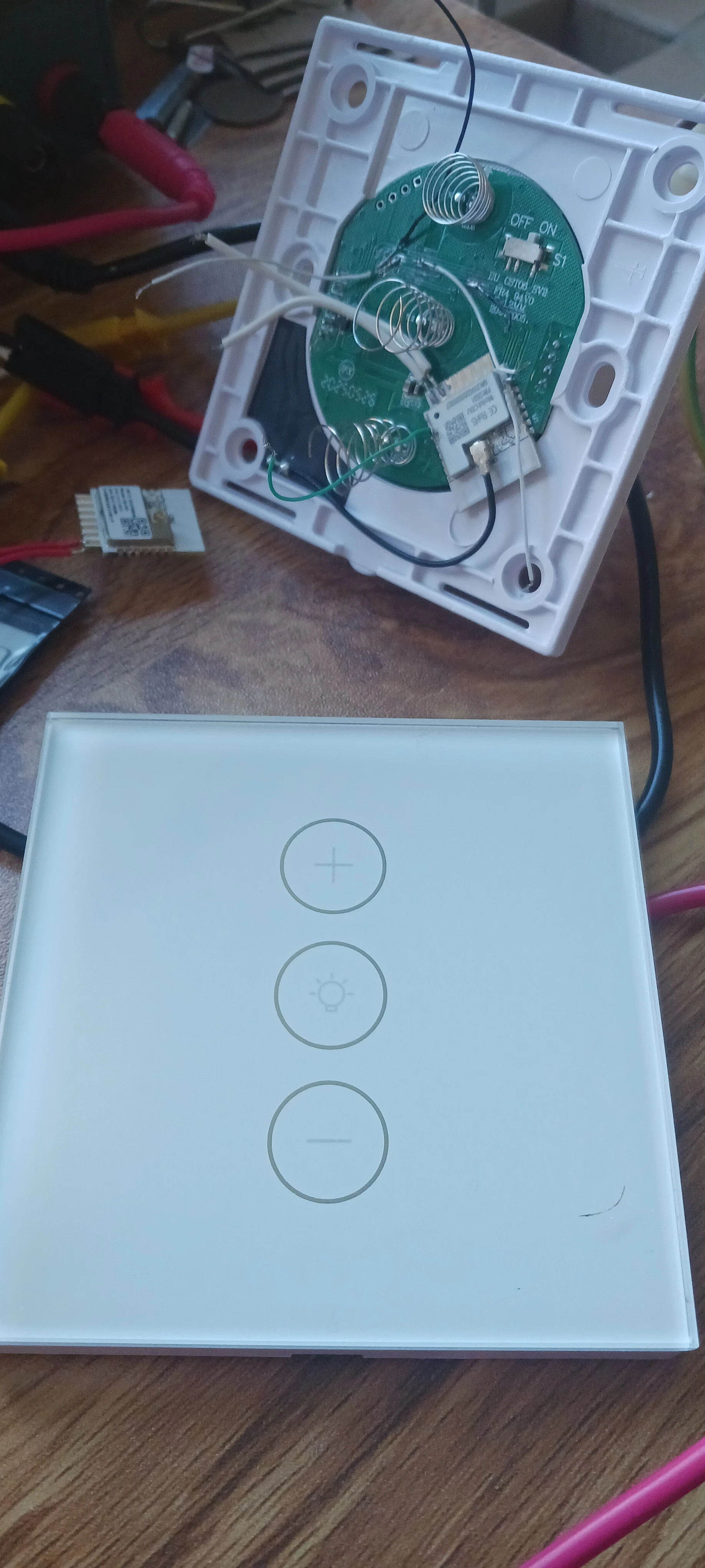 I have a Tuya dimmer switch, It has a Beken unit in it BK7231N it had a and and - symbol on it and a middle on and off switch.
