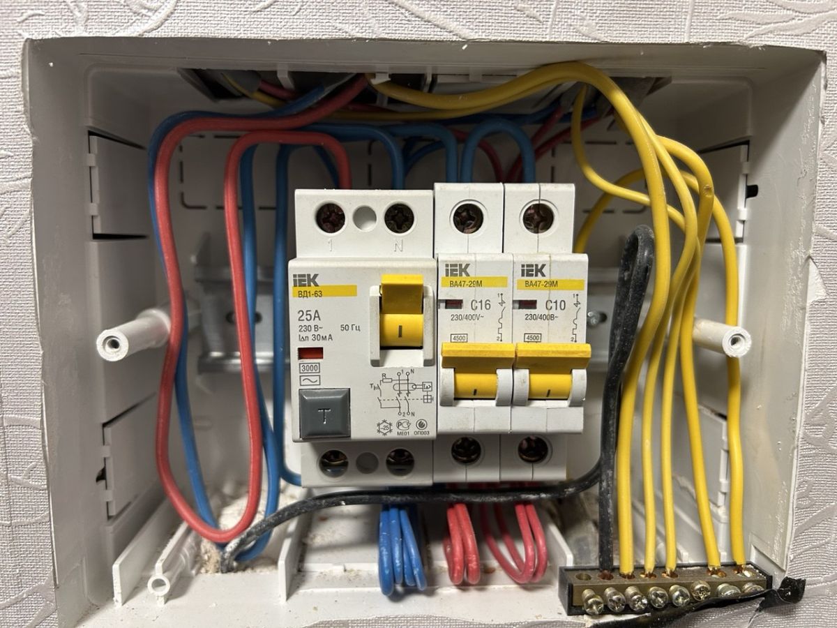 Initial assessment of available information - Your board (photo) is single‑phase, DIN‑mounted, with: - 1 two‑pole RCD (IEK, 25 A, 30 mA) as the incomer. - 2 single‑pole MCBs (C16 and C10) as outgoing feeders. - Separate busbars for neutral and (apparently) protective conductors. - You want to add a three‑position reserve input device (I–0–II), i.e., a manual transfer switch or motorized ATS, often called “реле вводу резерву / АВР”.
