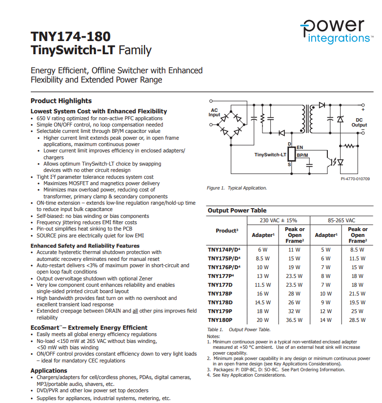 The power supply is based on the TNY176DG in a surface-mount version. There is also space on the board for its through-hole counterpart.
