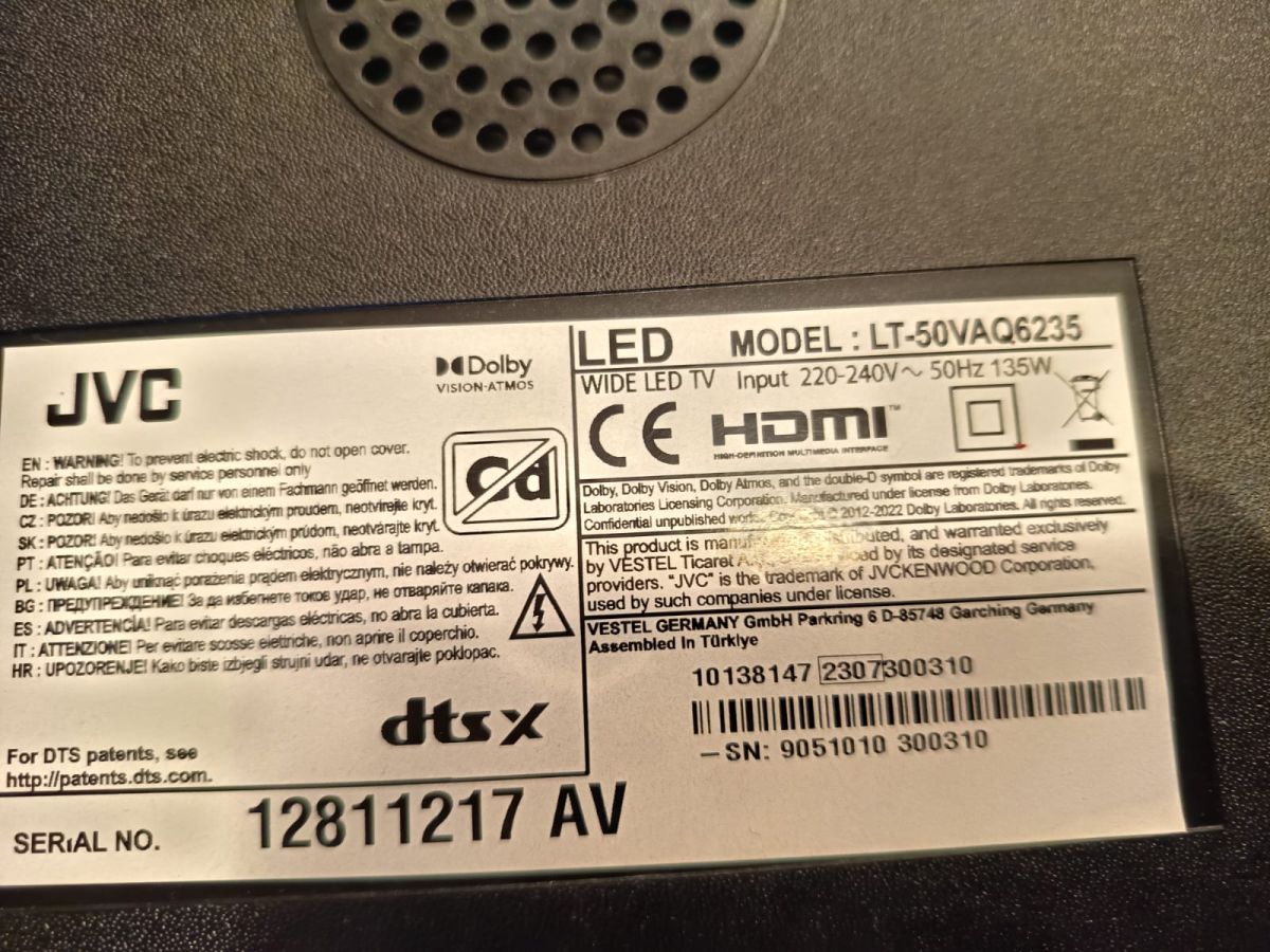 Now screen flashes from black to white with JVC logo, in approx. 7 s intervals.
