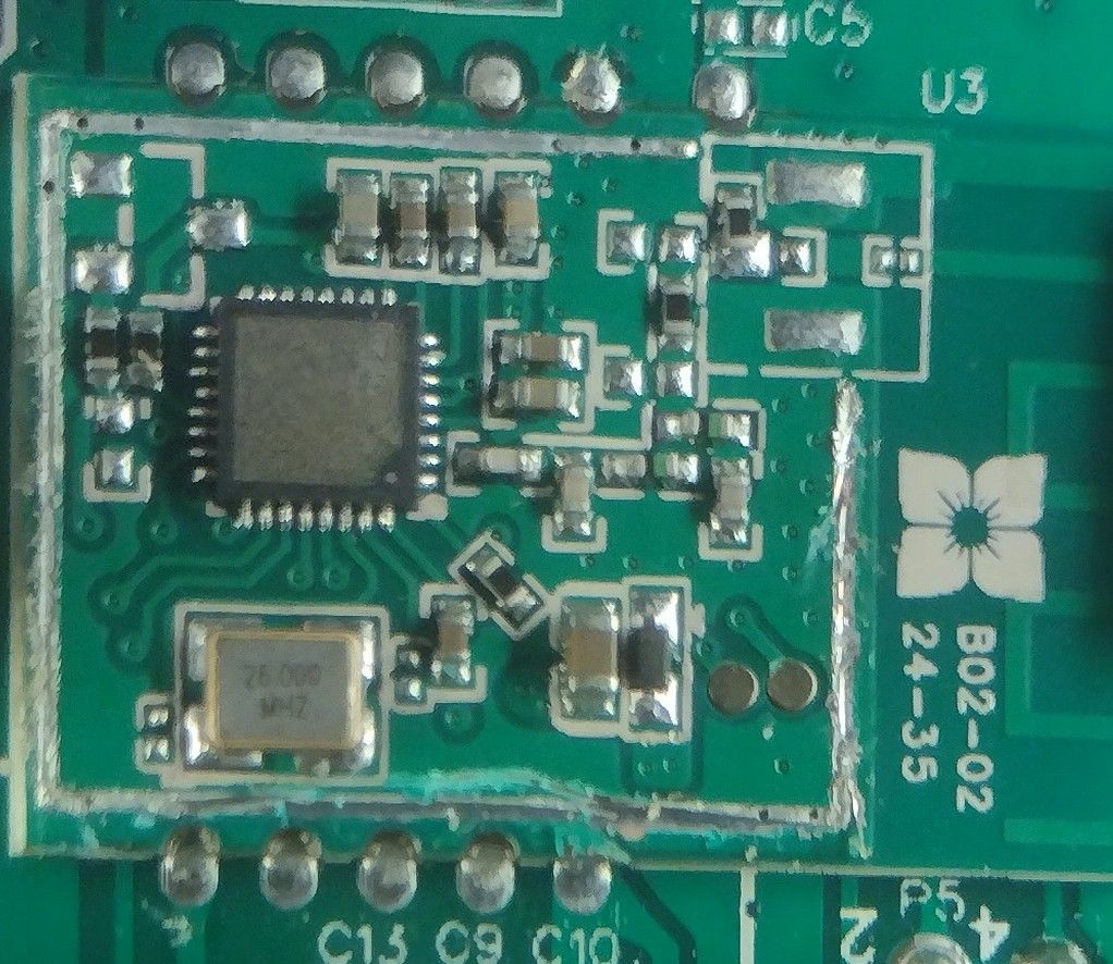 It is a Wi-Fi/BLE chipset, but the markings have been erased on the chip.