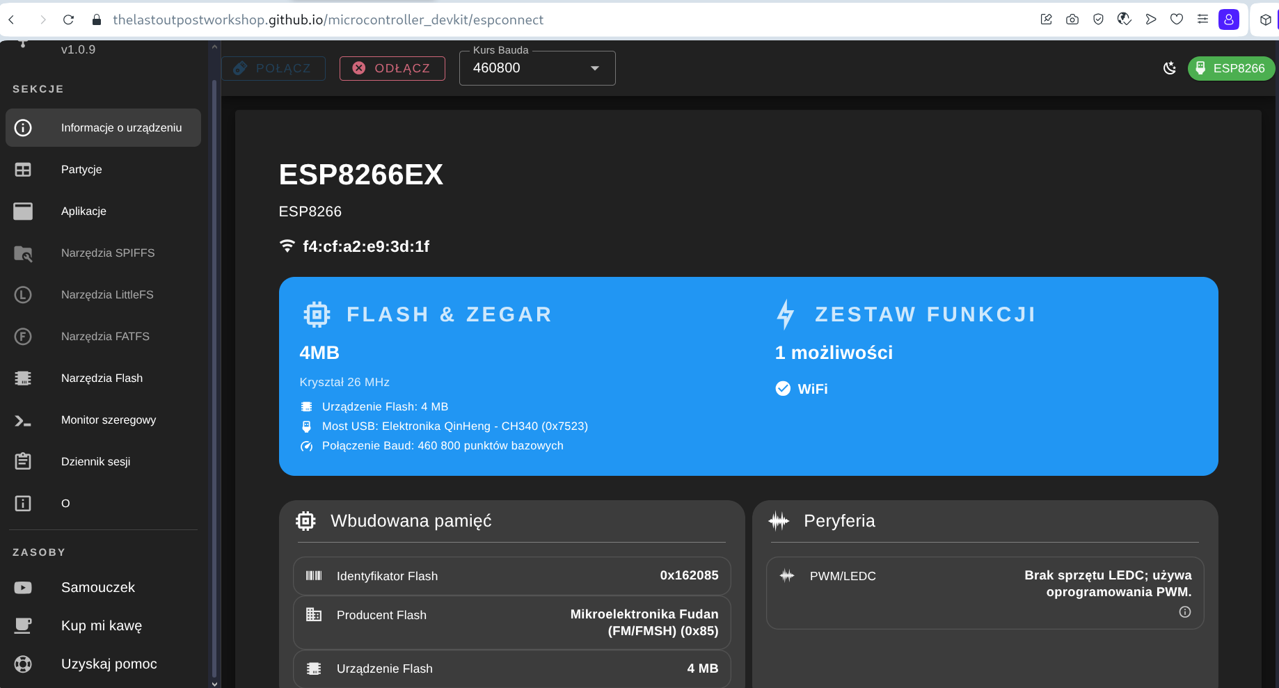 In summary, the tool looks very promising. The whole thing is very fresh, looking at GitHub it appeared about 3 weeks ago, but in my case it even has a chance to replace esptool. Everything in one place, convenient and accessible.