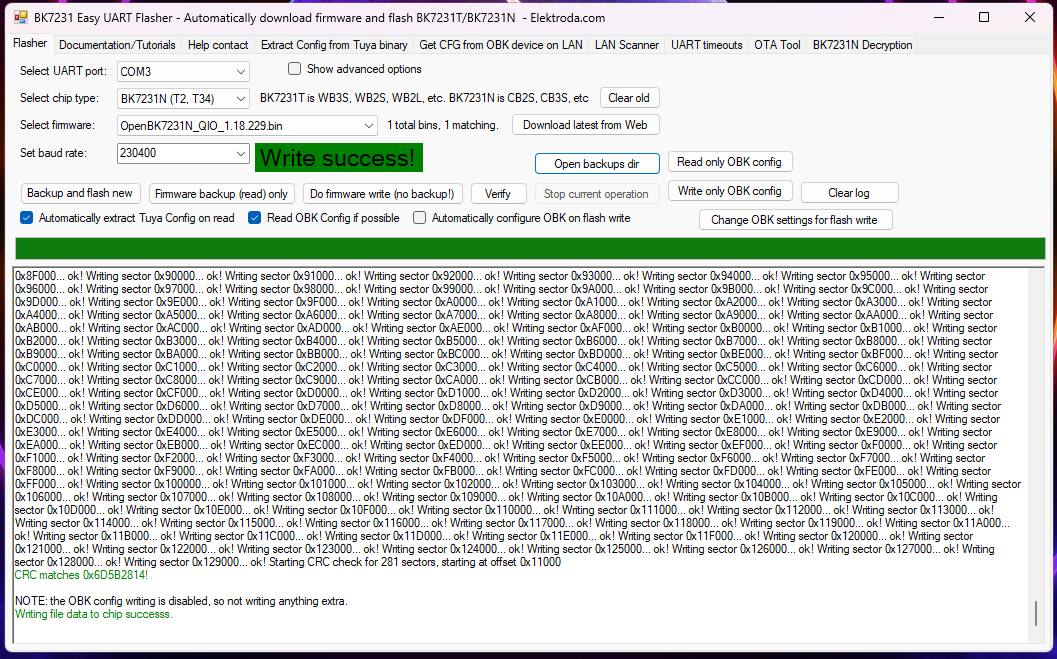 I have tried pressing the button once, several times, and holding it. I have tried grounding the top-left (RST) pin on the CB3S. I have tried 9600, 115200, and 1,000,000 baud. I have tried BK7231 Easy UART flasher on my Windows laptop and ltchiptool on my Linux laptop.