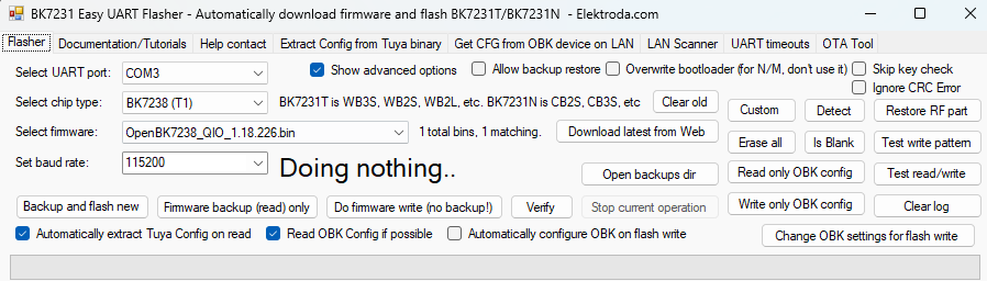 - Select chip type BK7238 (T1) and Download latest firmware from web