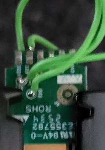 I have removed the microcontroller board - again with soldering iron and the help of desoldering braid - and have attached four appr. 5 cm long cables to the solder eyes marked as GND, 3V3 and TX1 on the one side of the PCB and to RX1 on one of the copper connections.