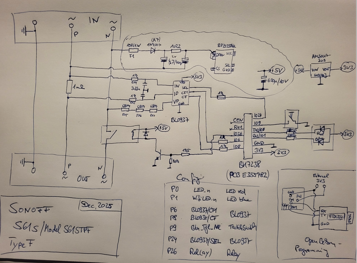 This is a teardown and modding guide to OpenBeken of the Smart Plug Sonoff S61TPF which is available at Amazon for 10,99 € in December 2025.