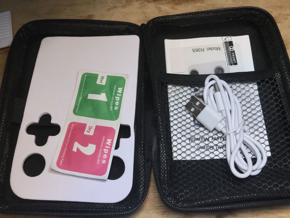 The gadget in question is based on a 64-bit processor clocked at up to 1.5 GHz and 1 GB of RAM. It offers a 3.5" IPS OCA colour display with 640x480 resolution and a 3000 mAh lithium battery. It is available to buy for around £150, although there are cheaper clones in circulation too. The price may seem steep, so it remains to be seen if it was worth it. However, it has to be said that the kit is quite rich. We get: