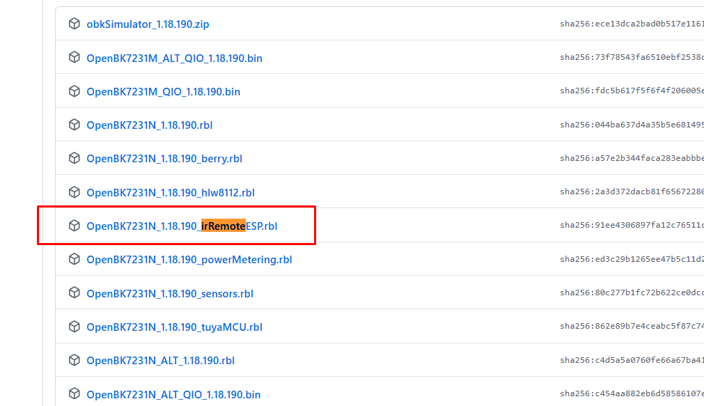 Note that there are two versions of the OBK available - the main one is the Arduino-IRRemote integration and the other is the IRRemoteESP8266. The IRRemoteESP8266 version supports additional protocols and can be downloaded here: