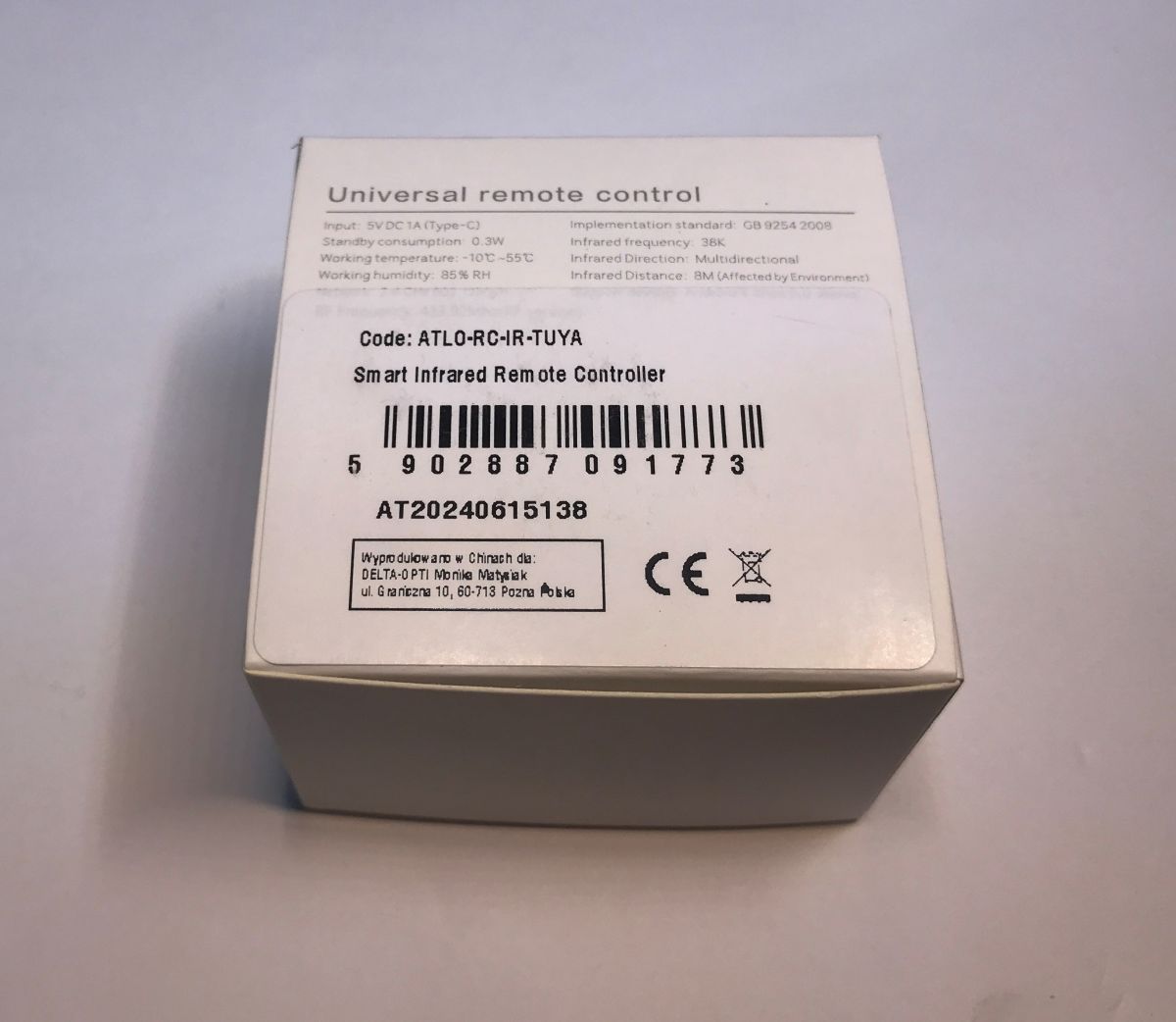 I would like to invite you to a demonstration of the interior and software changes of the Tuya universal IR remote control. The device shown here is capable of receiving and transmitting infrared signals in various remote control standards such as RC5, RC6, NEC, etc. The whole thing is controlled from Wi-Fi, so various complex mechanisms and automations can be created, and even potentially paired with Home Assistant.