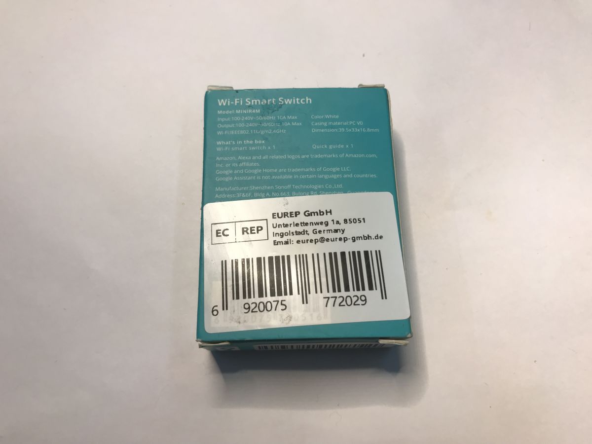 We bought the Sonoff Mini R4 M for £30. This is a little more expensive than the cheapest Tuya products, but maybe it's worth it? All we get in the kit is the product itself and the manual: