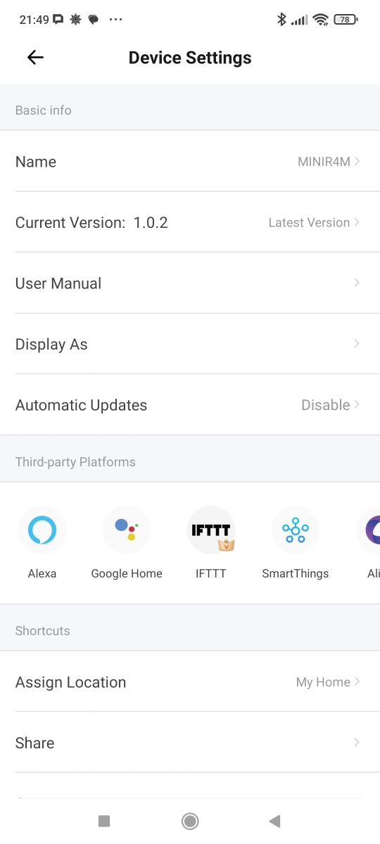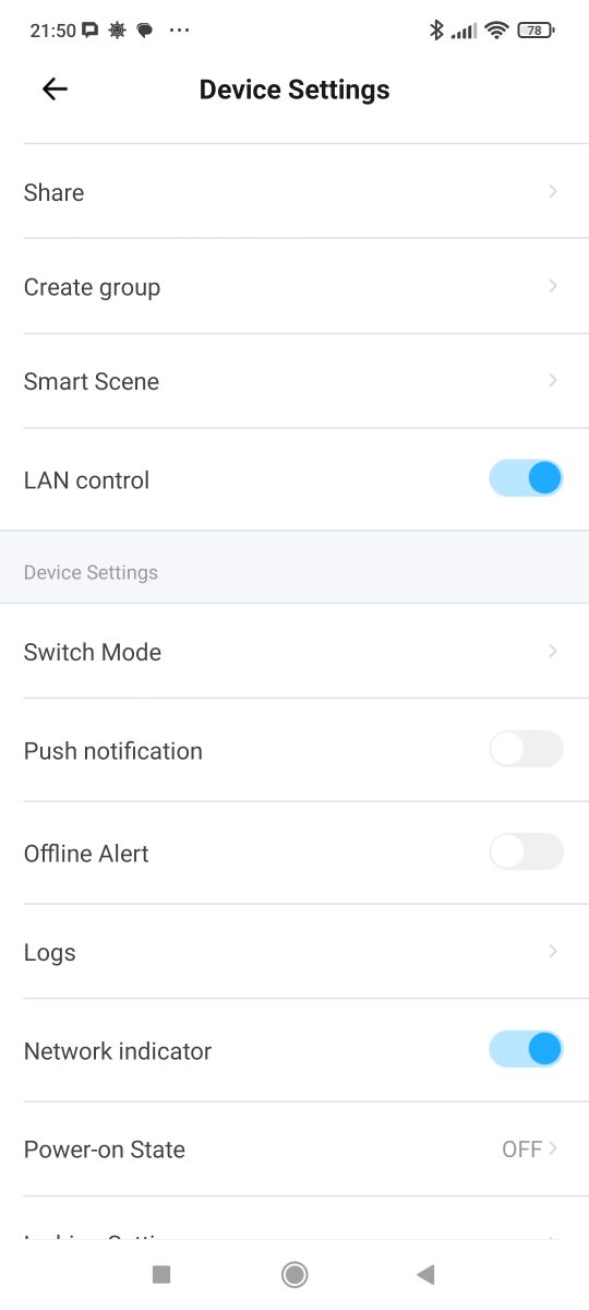 The device offers integrations with platforms such as Amazon Alexa, Google Home, IFTTT, SmartThings, etc. Scenes and automations are offered as standard. Here we additionally have support for control via LAN (local area network), notification and alarm settings when the device is offline. It is also possible to disable the Wi-Fi status LED (network indicator) and set the status when power is restored. This is very convenient!