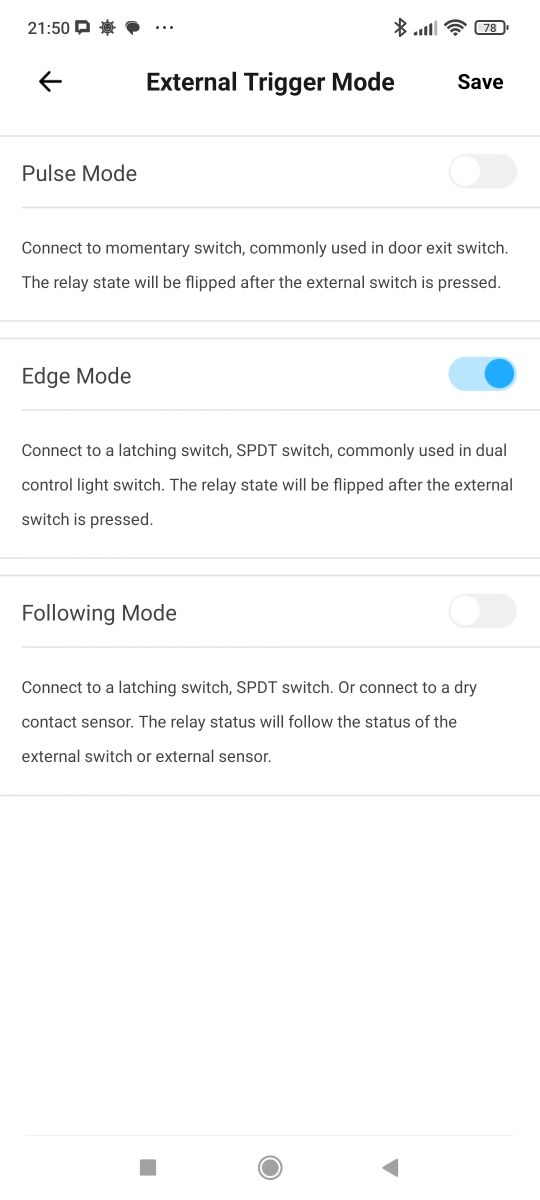 Switch mode, on the other hand, allows you to handle different types of buttons - bistable and monostable. In addition, you can also separate the relay from the button to rely on automations.