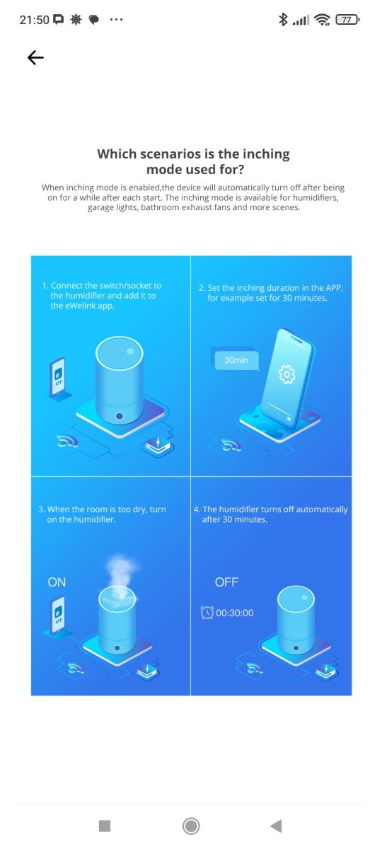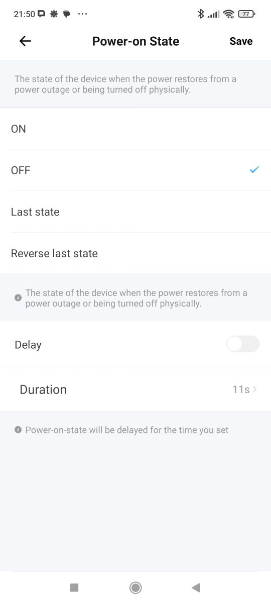 There's news in the status settings after power restoration too. The delayed option I hadn't seen before. There is also inching left - that is, an automatic return to the previous state after a given time. The infographic shows that this is useful for switching off the humidifier, for example.