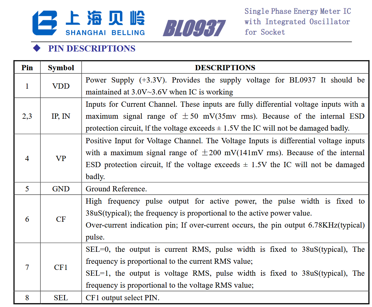 - Metering requires CF, CF1, and SEL; CF gives power, CF1 gives V/I selected by SEL. [Elektroda, max4elektroda, post #21807434]