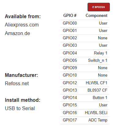 Now the GPIO still needs to be configured. In OpenBeken we would have automatic configuration detection, but here it is done manually. Fortunately, someone has done this for us before:
