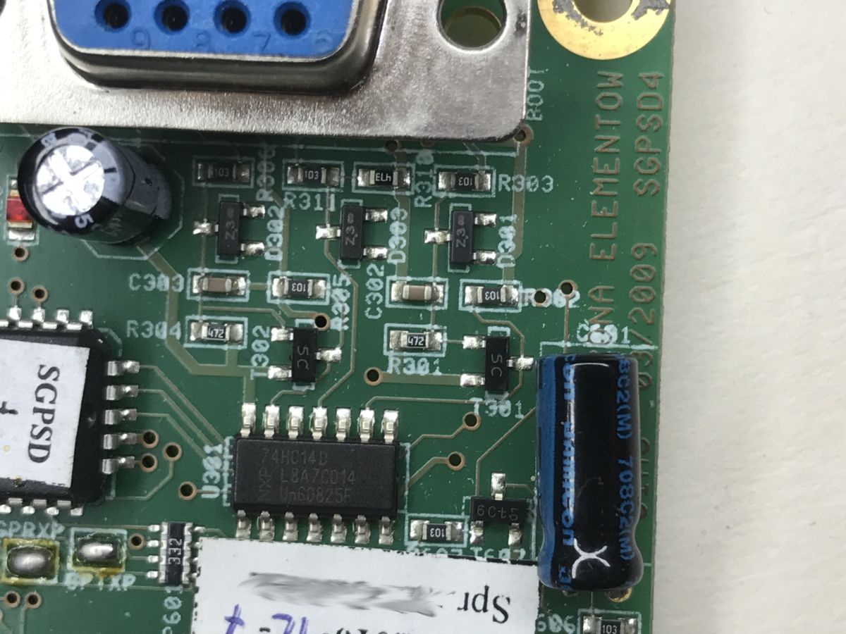 The GPS module itself is a TIM-4H-0-000 made by uBlox, although I can also see the logo of the then Atmel (later acquired by Microchip) there - probably from the chip? Right next to it I see a 74HC14D (HEX type inverter with Schmitt flipper inputs), perhaps for matching logic levels of signals.