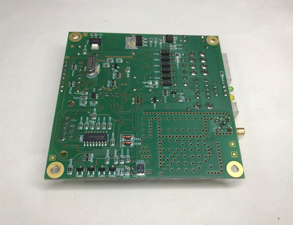 The board is a two-layer board, mainly surface-mounted, although a few through-hole components can also be found on it. Immediately striking is the section with the GPS module, where you can see a lot of vias, probably to reduce interference.