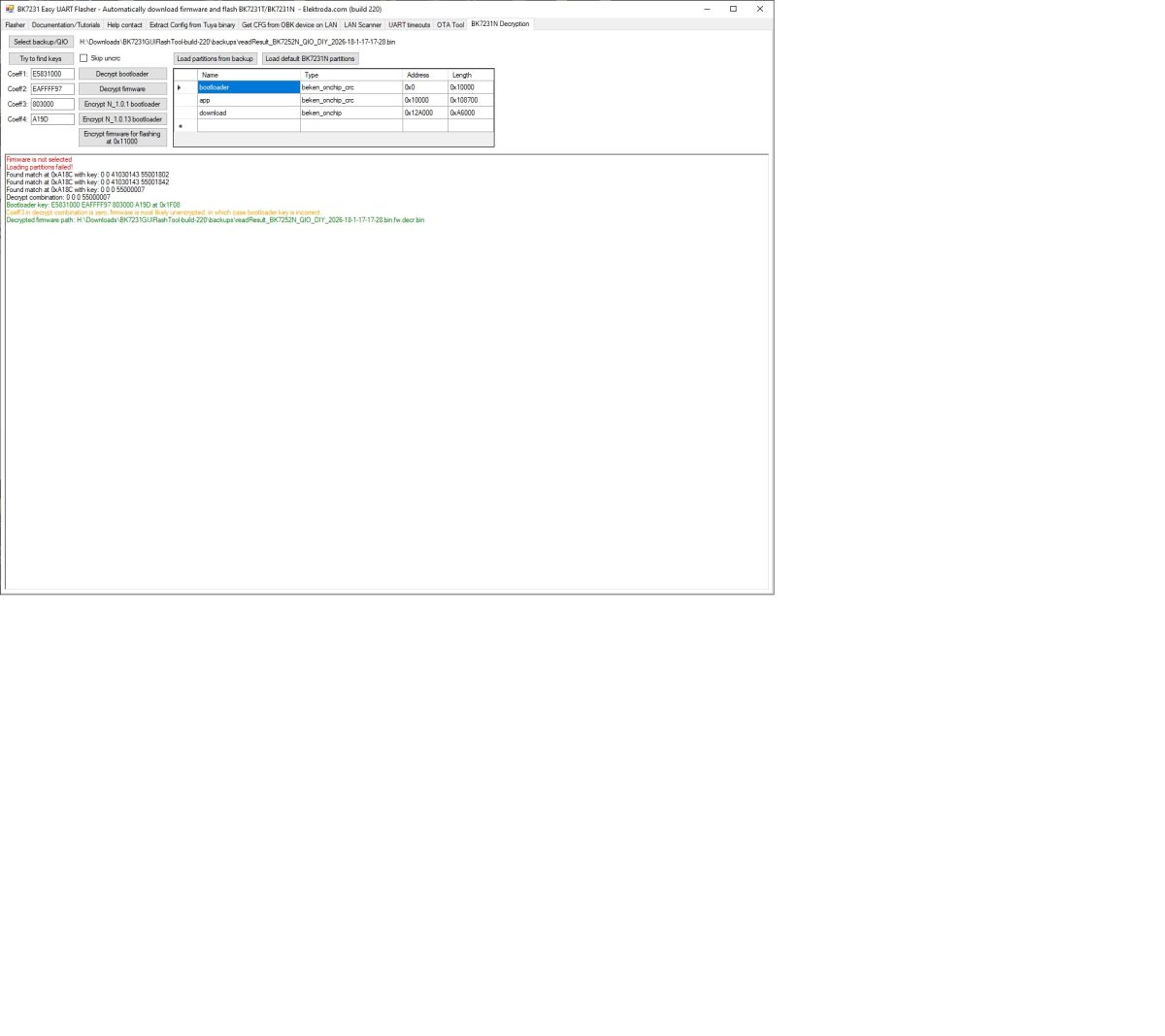 I am presuming that this is compatible with OpenBK7238_QIO_1.18.247 firmware (I tried several other ones in the repository).