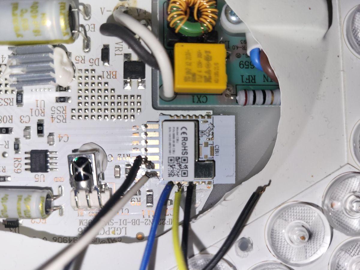 blue=TX / yellow=RX / black=GND and CEN / white=VCC