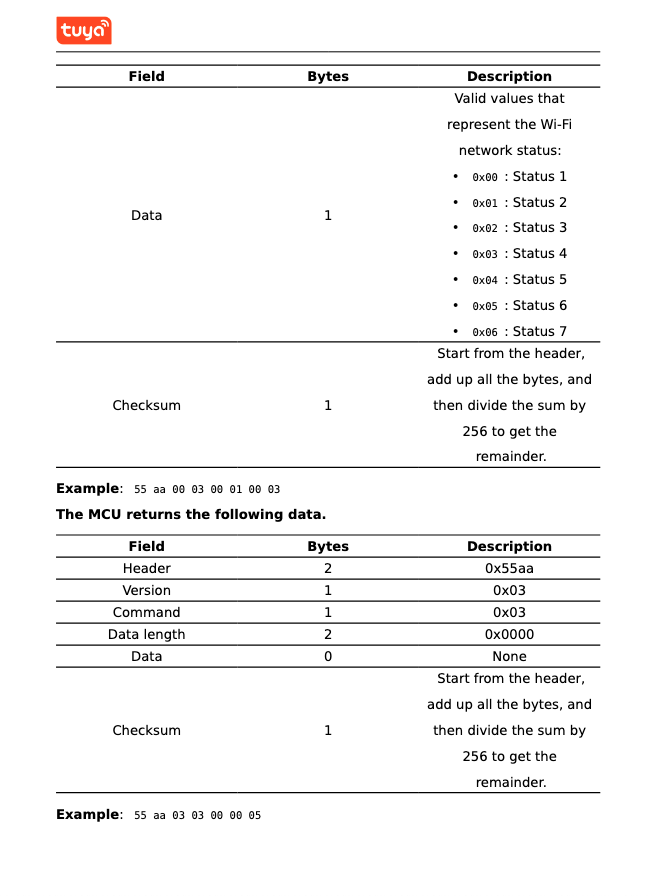 HEADER VER=00 WifiState LEN 01 CHK