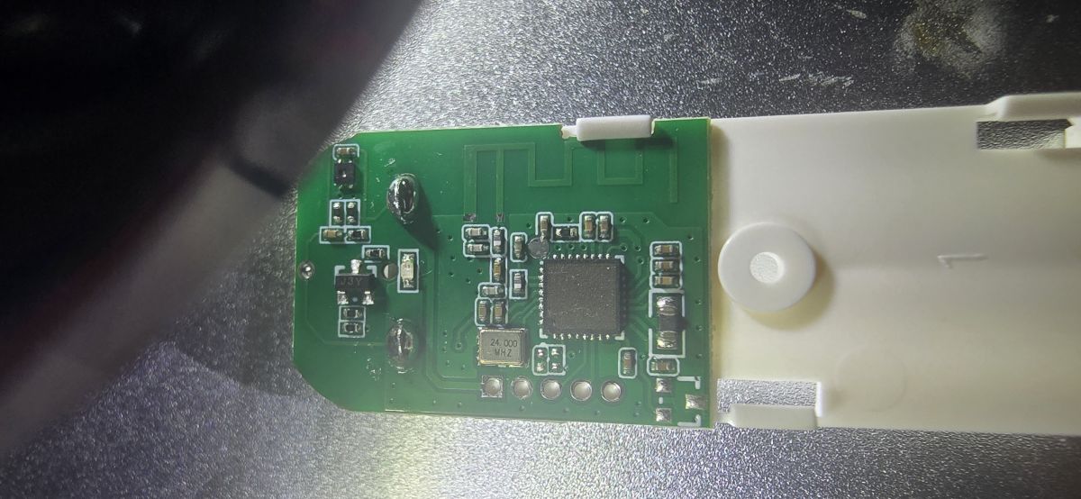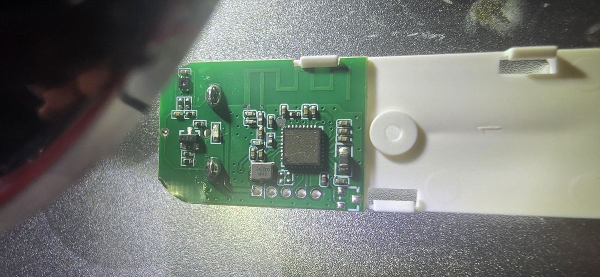 Both Beken and ESP seems to have UART in the same pins row as crystal (oscillator), so probably it's not them... have you tried to receive anything from UART via USB to UART converter?