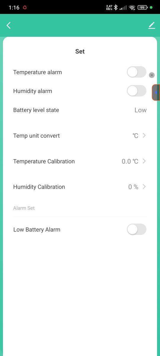 Basically, like most temperature/humidity sensors there is not much in the app i.e. data visualisation and simple settings.