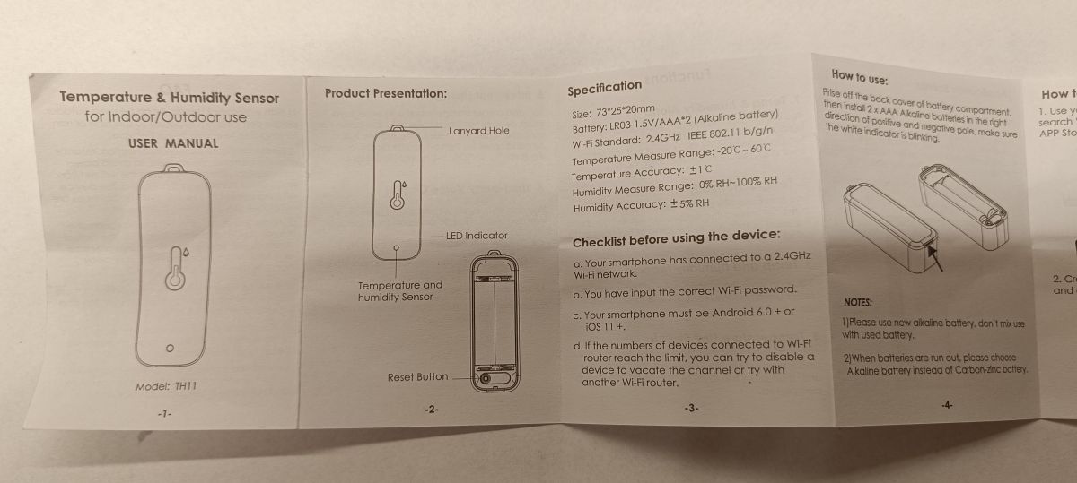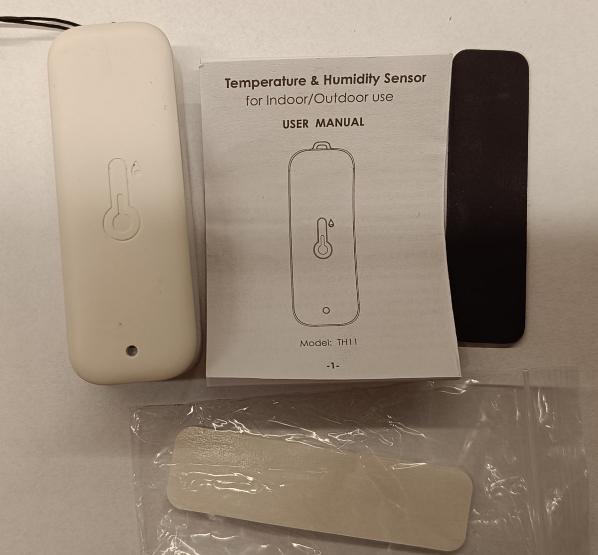 Here, without much surprise, a short instruction manual, the sensor itself + pendant and the mounting tape and magnetic tape.