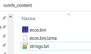 Separately, we have the ROMFS section. As the name suggests, it is read only - read only. The actual ecos firmware is there, but you have to decompress it first - it uses the LZMA standard.
