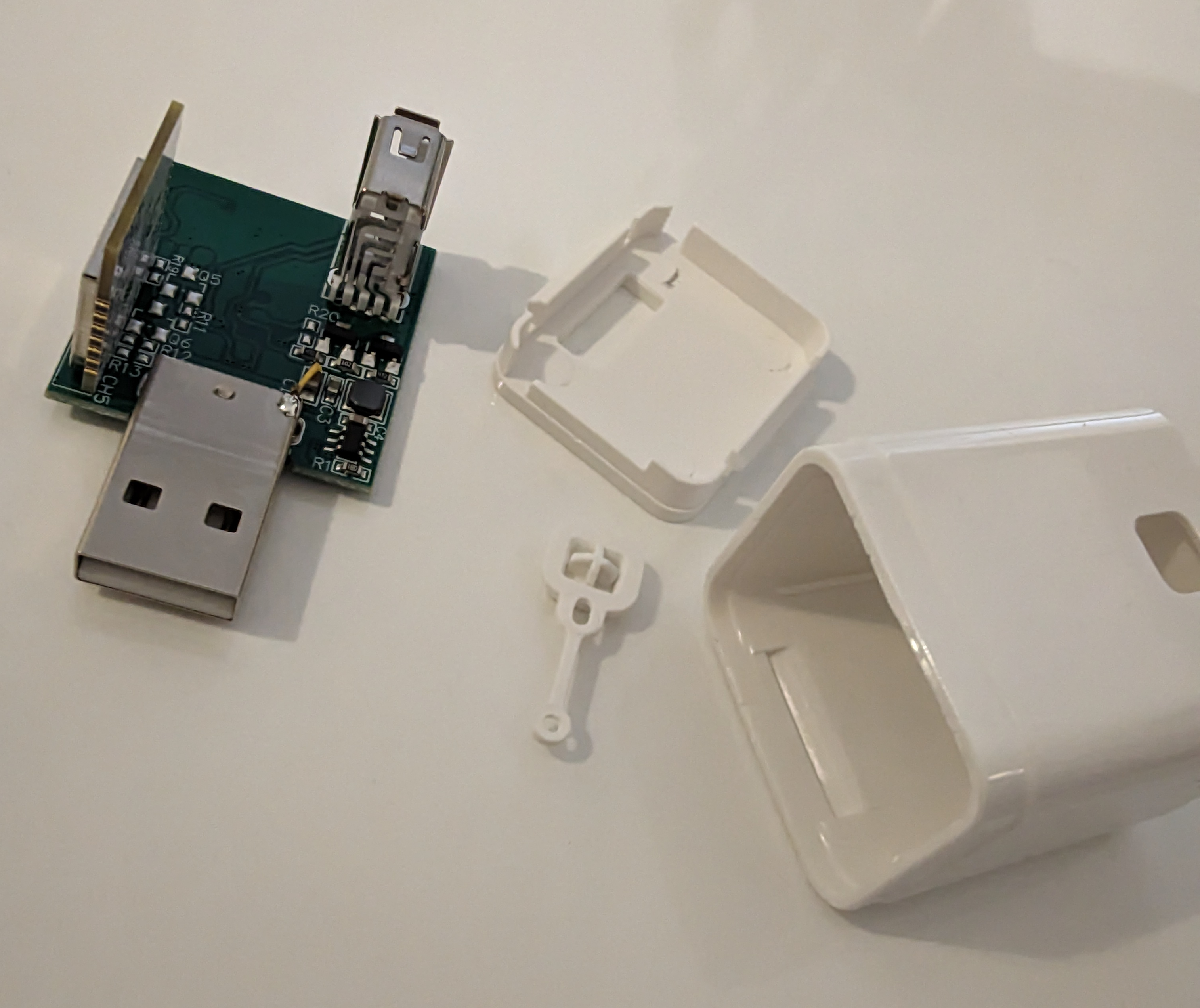 I had a need to use a remote on/off switch for a USB-connected device, so I bought two pieces of cheap adapters.