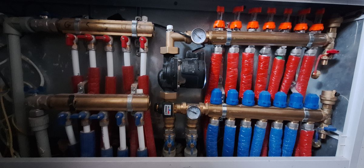 AI: Do you have any sort of manifold with actuators (solenoid valves) on the first floor by the radiators, or are there just regular valves/radiators with heads?