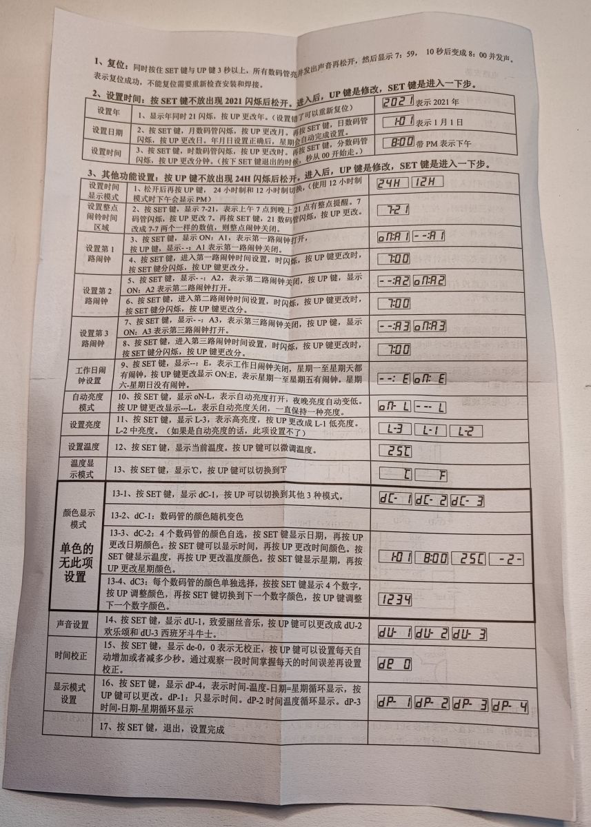 Fortunately, there is documentation for this clock available separately on the web, you can find it by the name CAI-201.