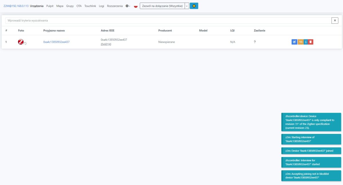 We make sure that we allow new devices to be attached in HA. After a while, the gadget will be recognised: