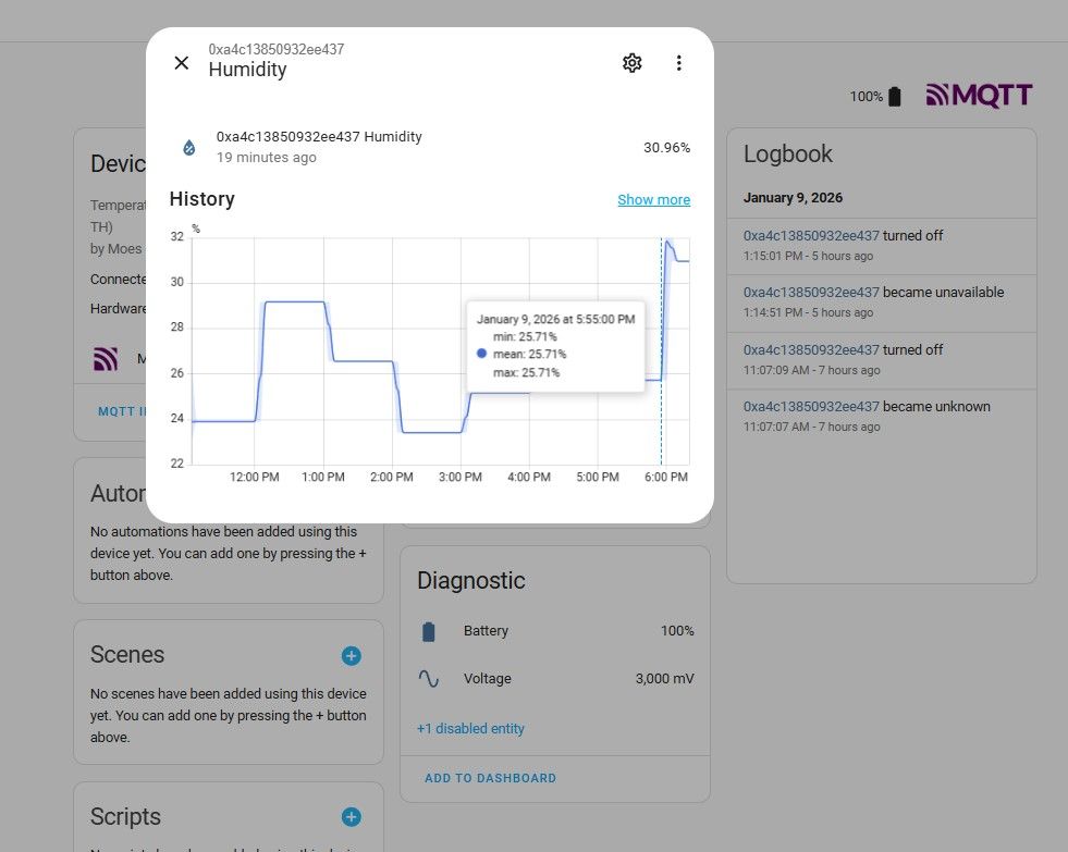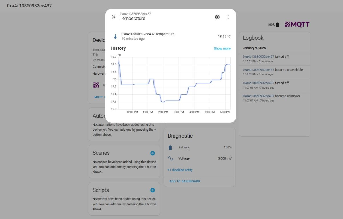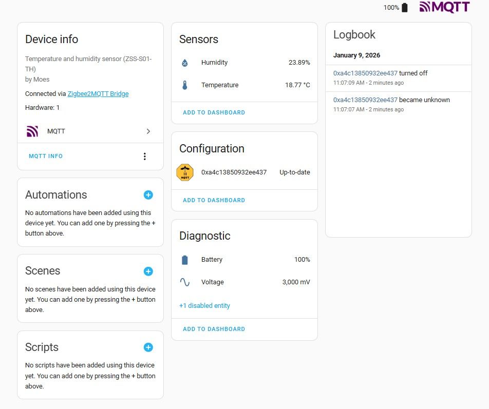 In summary , this was another really tiny Zigbee protocol compliant gadget. Pairing with the HA is trivial, you don't even need to open the case. I definitely recommend this - it's hardly worth going down the Wi-Fi route for battery-powered sensors. Here you get everything you need and you don't even need to change the firmware.