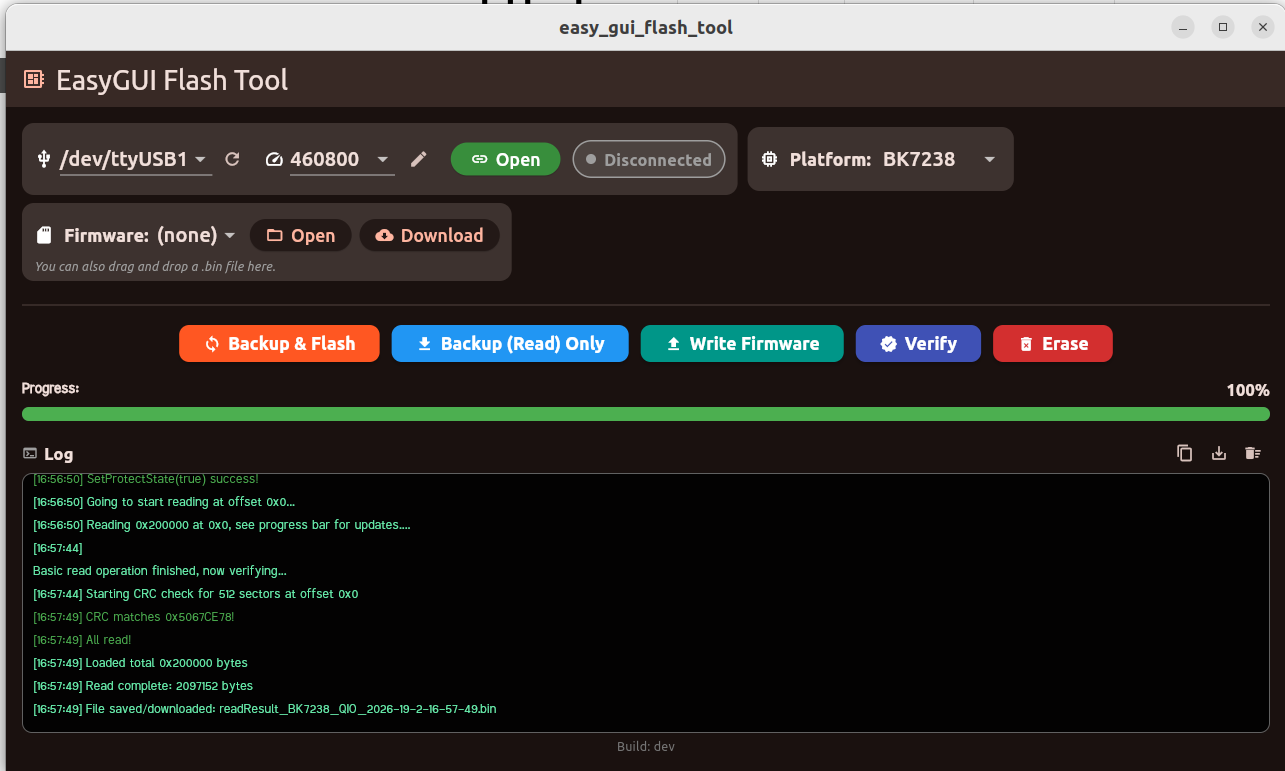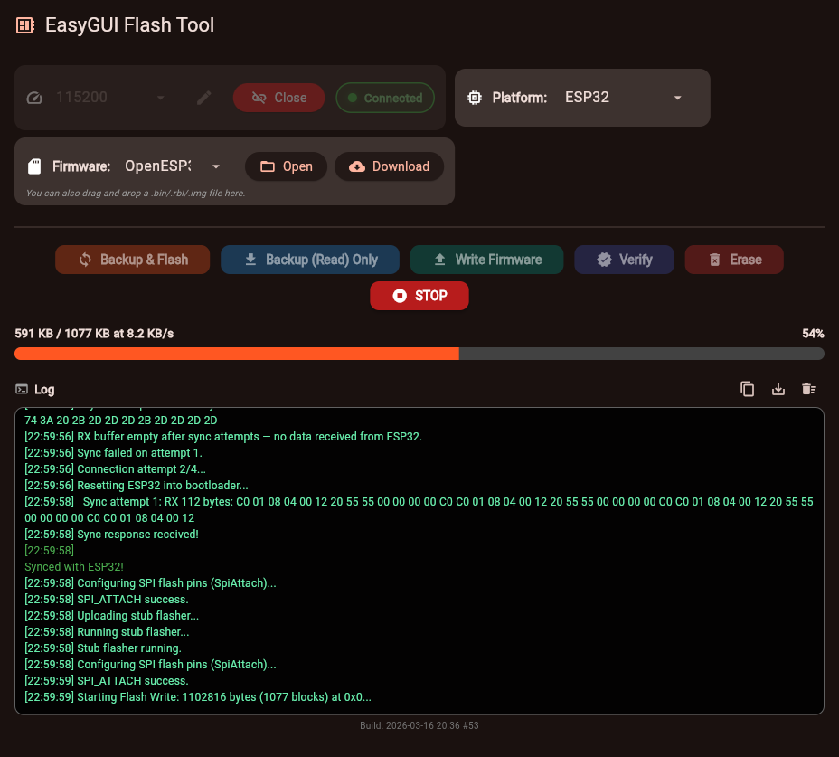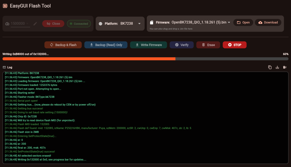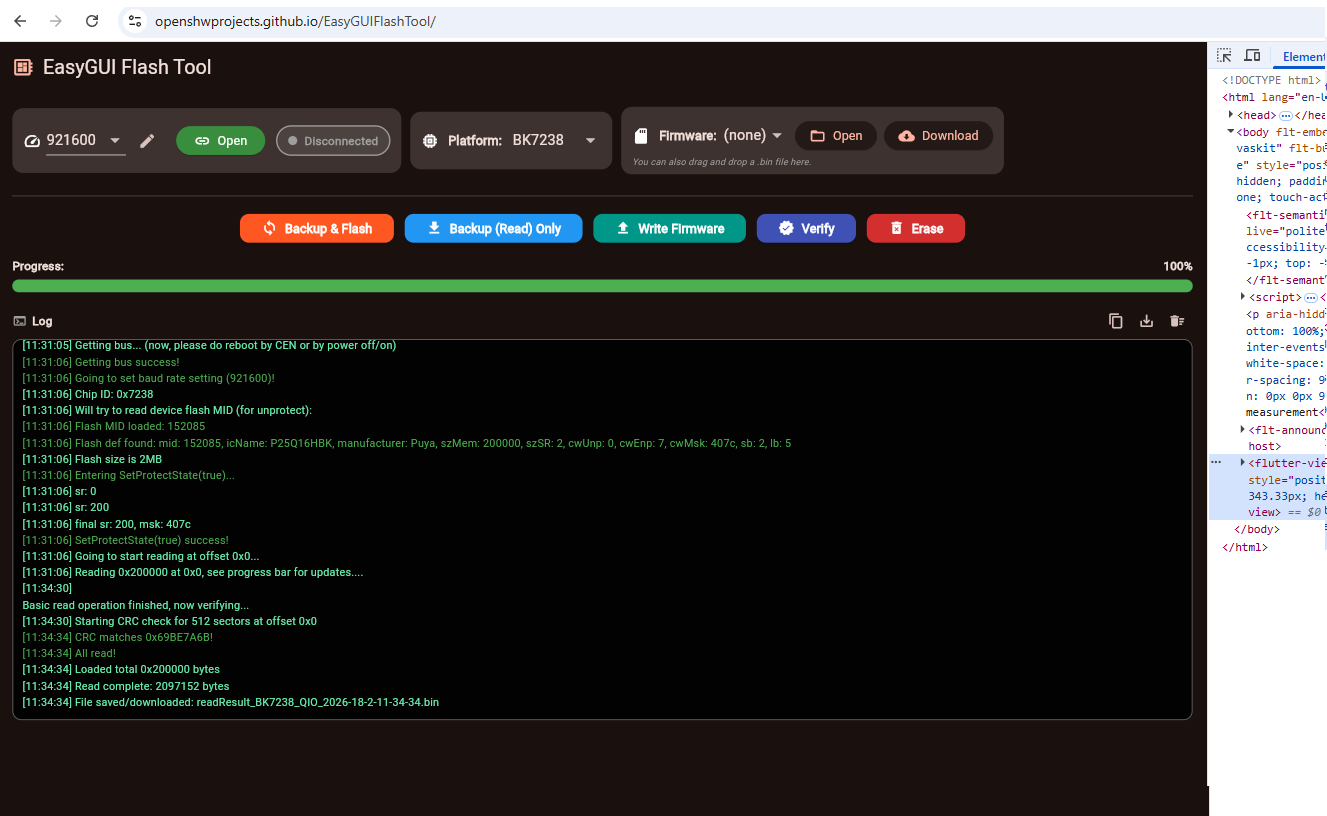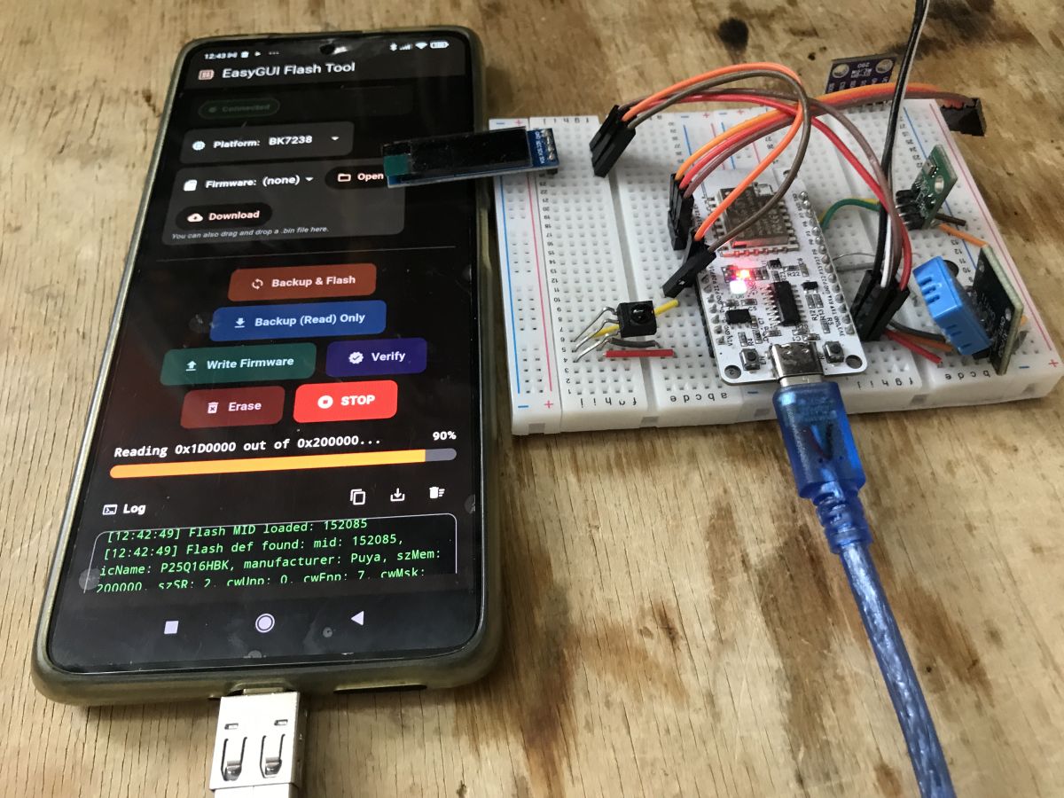 Here I will present a multiplatform IoT flashing solution – an early prototype of EasyGUIFlashTool. The goal of this project is to provide a simple, consistent, and user-friendly flashing experience across multiple platforms, without the need for vendor-specific tools or complex setup procedures. The same workflow and GUI concept are shared between Web, Android, and Windows builds. The current version of the tool is able to flash Beken chips and has built-in firmware downloader and command line working mode.