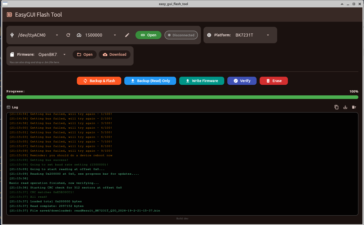 Still, currently it should be used only for testing, because on Windows we have a main mature version of our flasher: