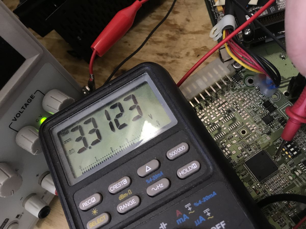 At first I reckoned that this connector was from ATX - but it doesn't fit and doesn't agree with the voltage from the case. Then I made a bet that the quadruple connector was a 24 V input. I used a lab power supply in current limiting mode for testing.