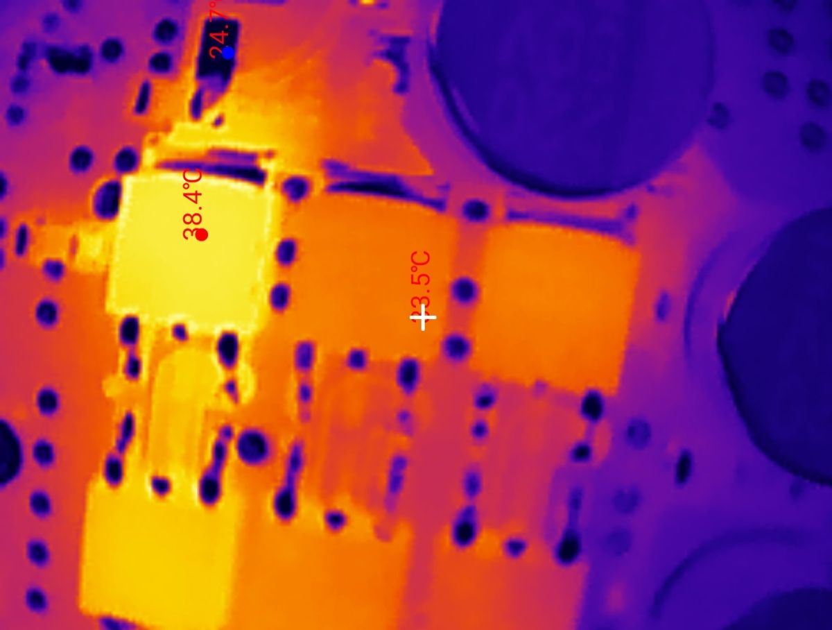 On the motherboard the key transistors from the inverters are heating up the most. On the computer board, the CPU heats up.