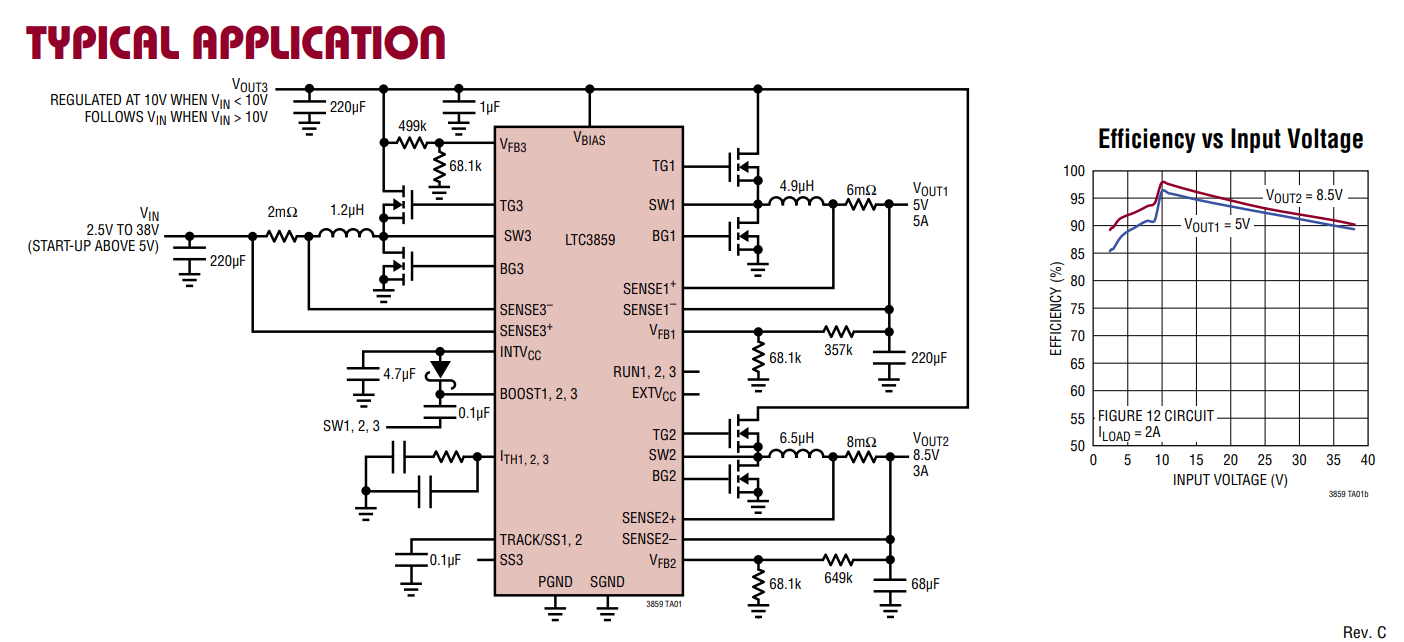 Nearby you can see the LTC3859, which is a triple controller for the voltage reduction inverter.