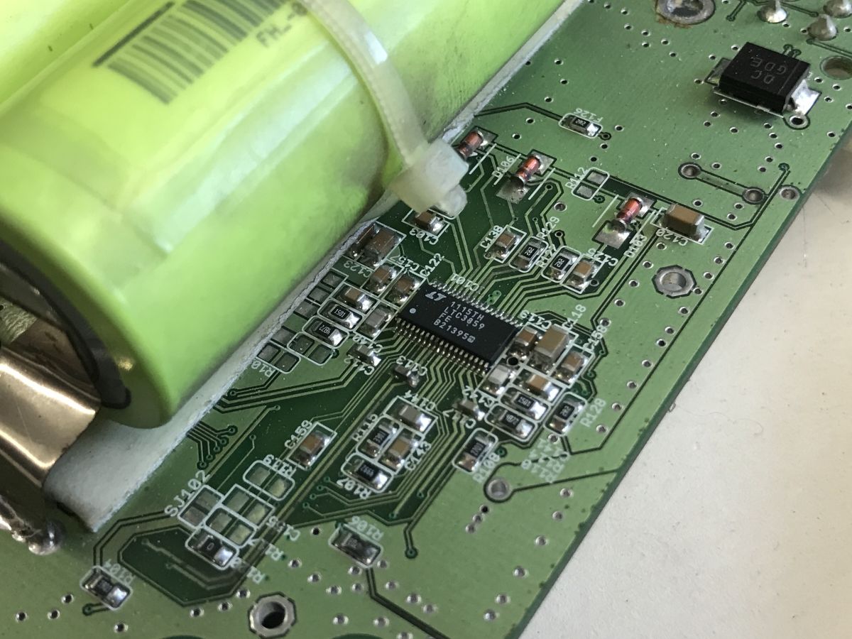 On the other side of it are mounted two ANR26650M1A A123 3.3V 2300mAh Li-FePO4 batteries. It looks like we have emergency power backup here in case of power outages in the supplied power. Unfortunately, in both units the cells are discharged to fractions of a volt: