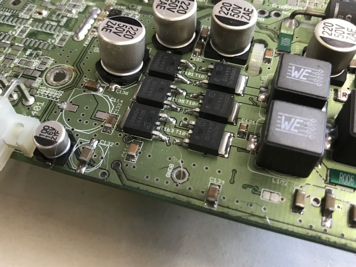 This would explain the presence of these transistors (088N04L), inductors and capacitors on the other side of the board: