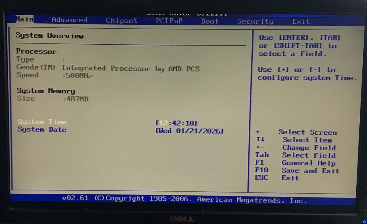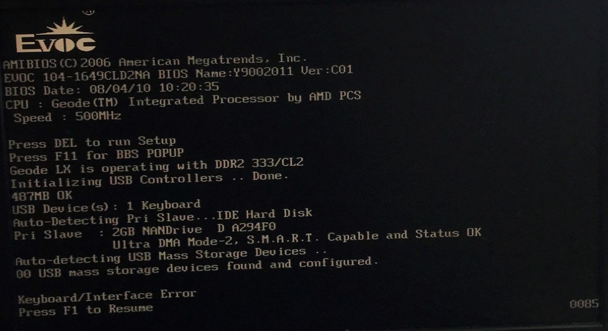 There is a picture - the device also sees the keyboard on the USB. The CPU is Geode (TM) by AMD PCS 500 MHz, the memory is DDR2 487 MB, the disk is 2 GB NANDrive D A294F0.