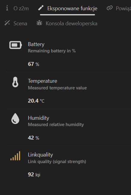 Fortunately, the basic Z2M item detected, namely temperature, humidity and battery level.