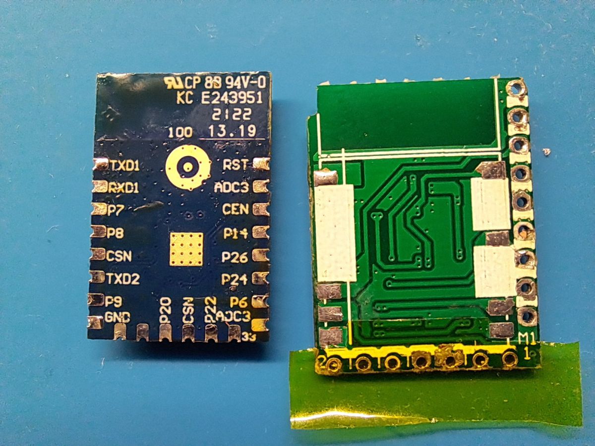 I confirmed that the device uses the CB3S module, but here comes the difference from all other dimmers I have seen here: The CB3S module only talks to the onboard MCU (HK32F03MF4P6). Only the TX line from the CB3S to the MCU exists.