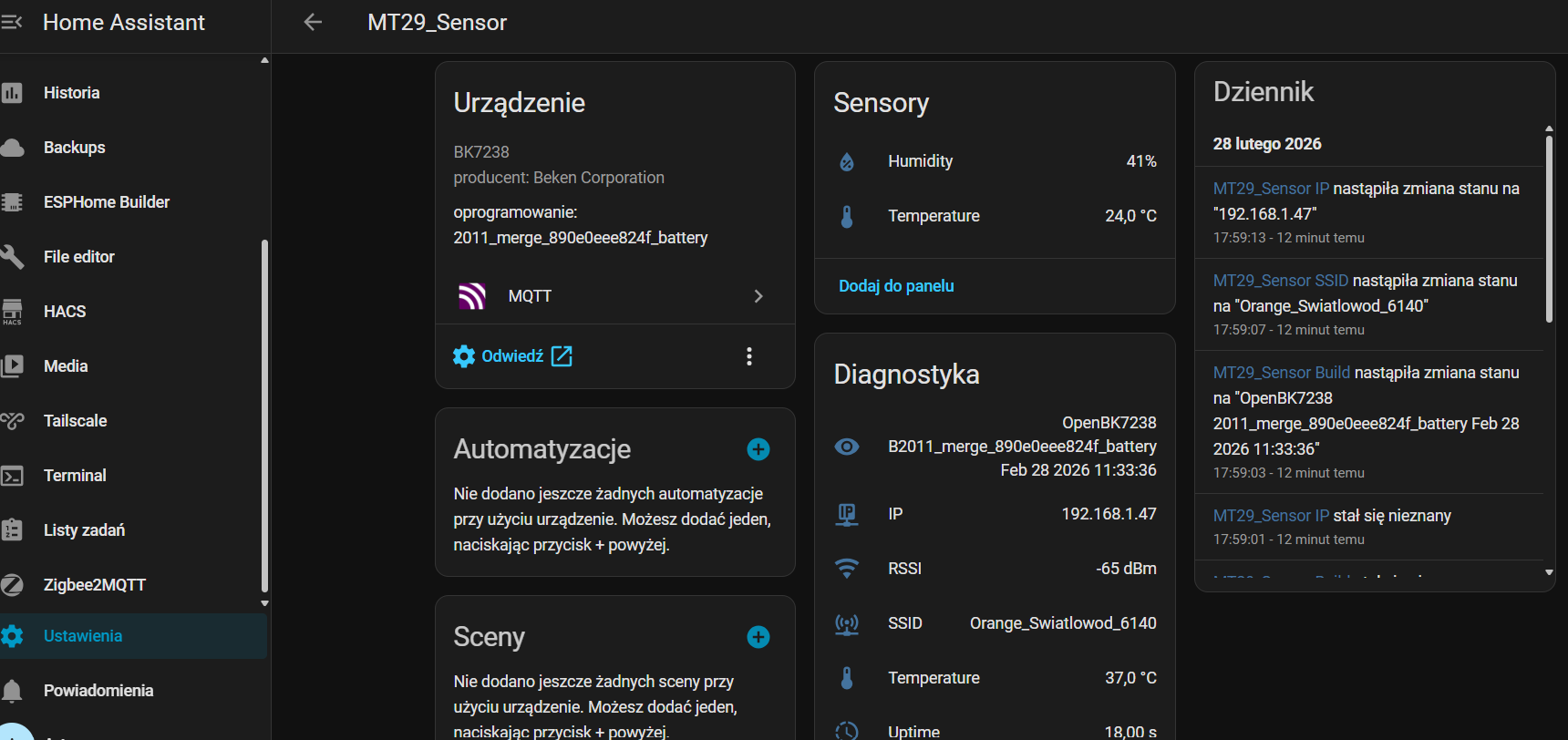 Air Detector on BK7238 after flashing openBK7231N 1.18.264 exposes its own Wi-Fi network and logs into the home network; instead of transmitting parameters from the sensors, it exposes a message in the logs: Info:TuyaMCU:TuyaMCU packet too large, 204 > 192. Can someone tell me how I can solve this.