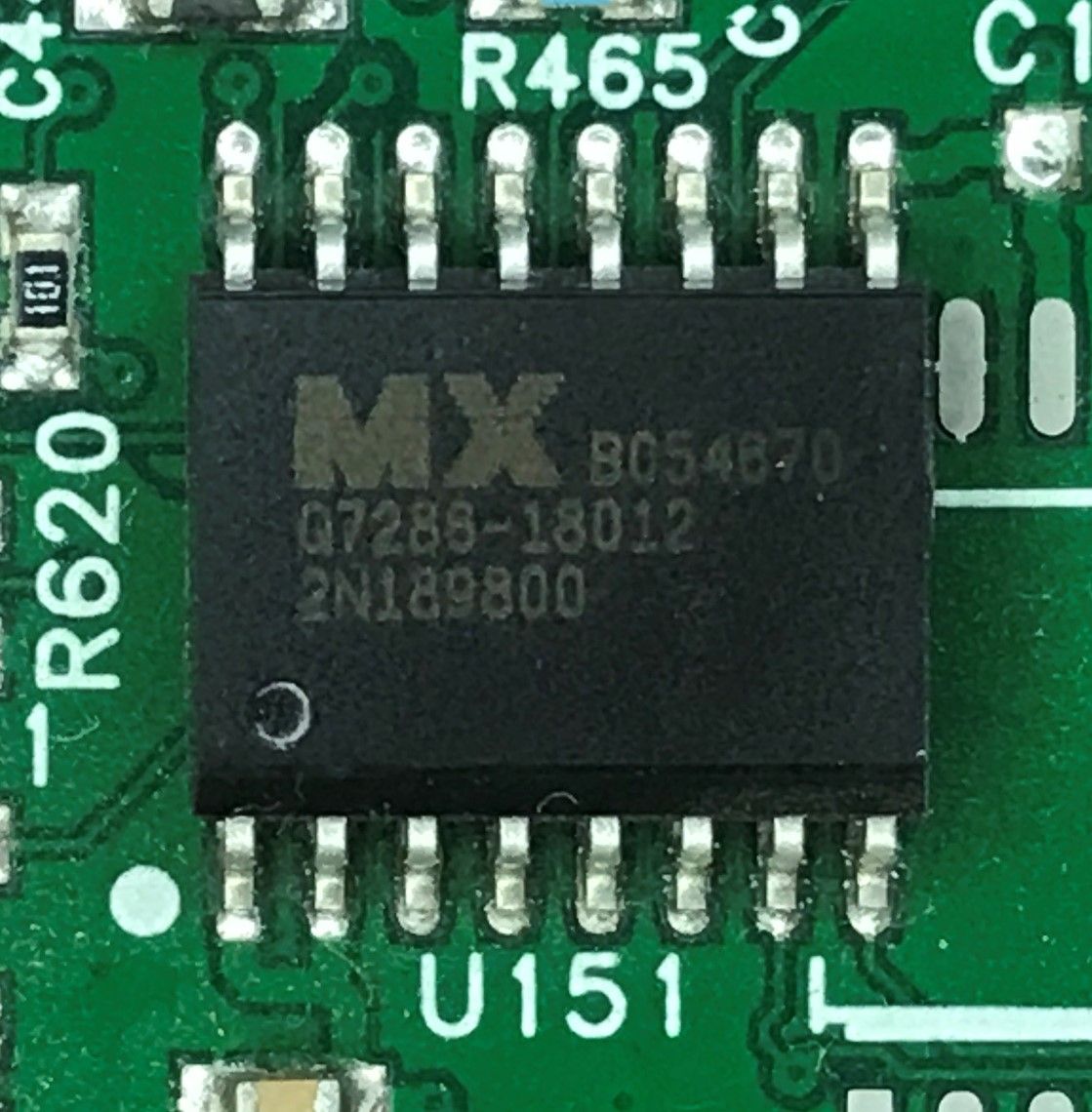 The patient is a Macronix memory, unidentified by me, from an old HP PSC1410 printer. The fact that it is a memory is evidenced not only by the marking, but also by the way the leads are connected. You can see here that only the pins that are responsible for SPI in the case of a typical SO16 chassis are just going to the main processor.